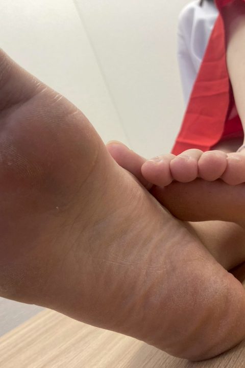 足が薄くてヒールダコはなく、普段から立ち仕事をされてるとのことで足裏は水分少なめ。気持ちガサついてるぐらいが風情あってイイんです。足コキされるには丁度イイんです。